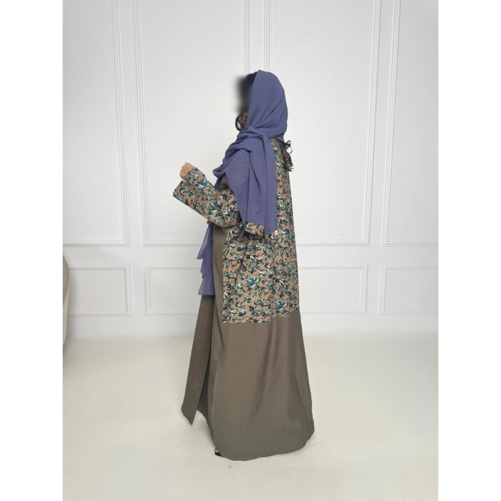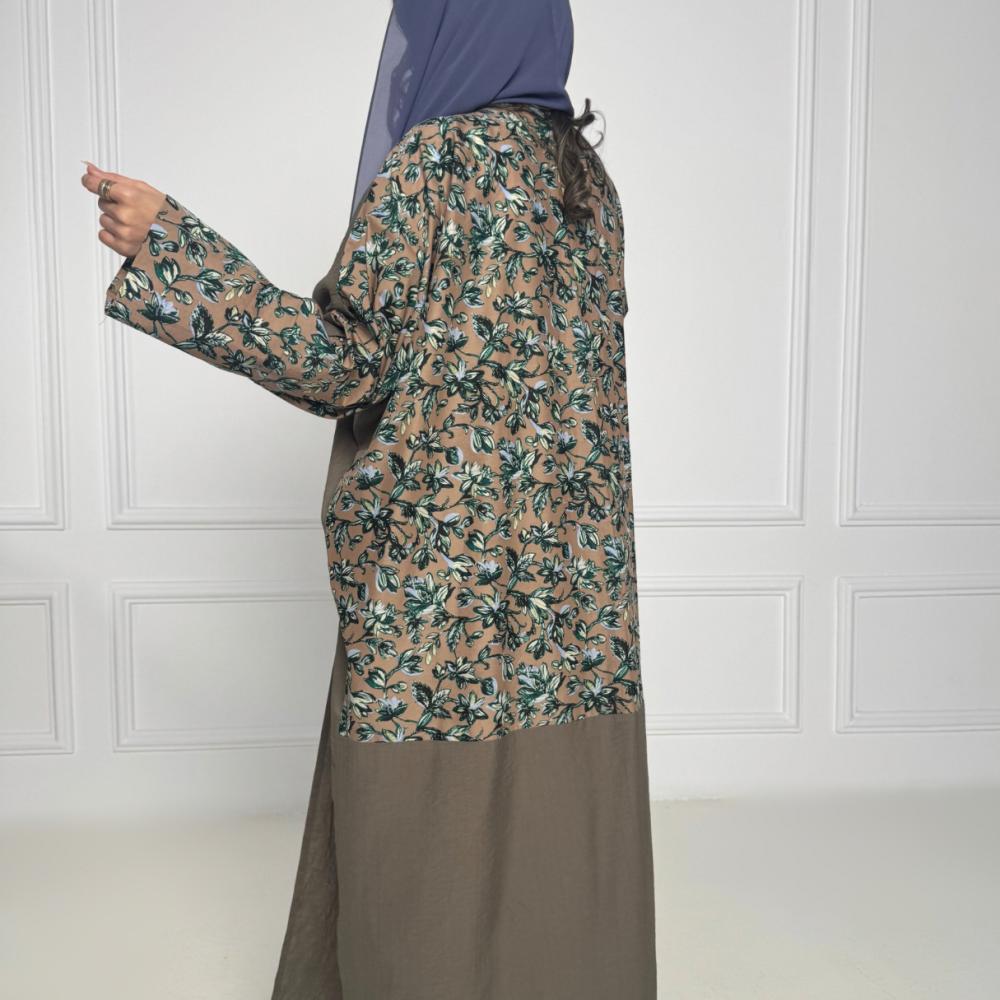 • تصميم أنيق ومتناسق: تتميز العباية بألوان متداخلة زاهية تمنحك إطلالة مفعمة بالحيوية والأناقة.