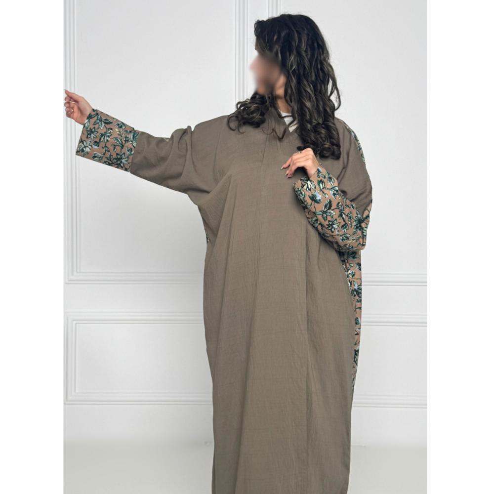 عباية كريب مكرمش زيتي مع قطن مشجرC112