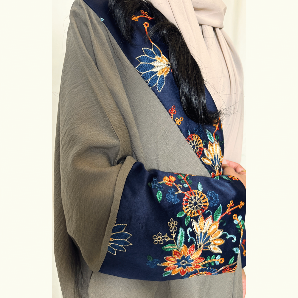 - تفاصيل أنيقة: أكمام كحلي مزينة بتطريز عالي الجودة تعكس الذوق الرفيع.