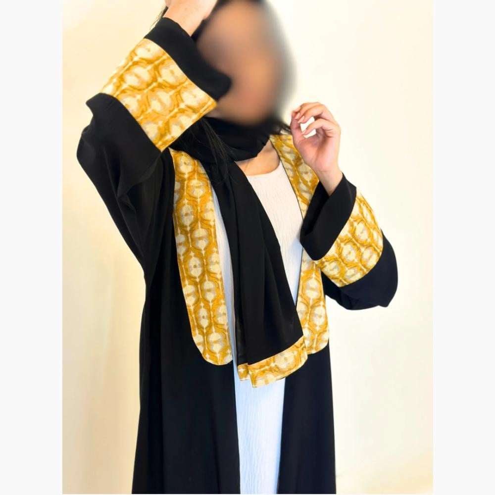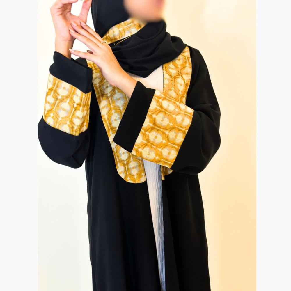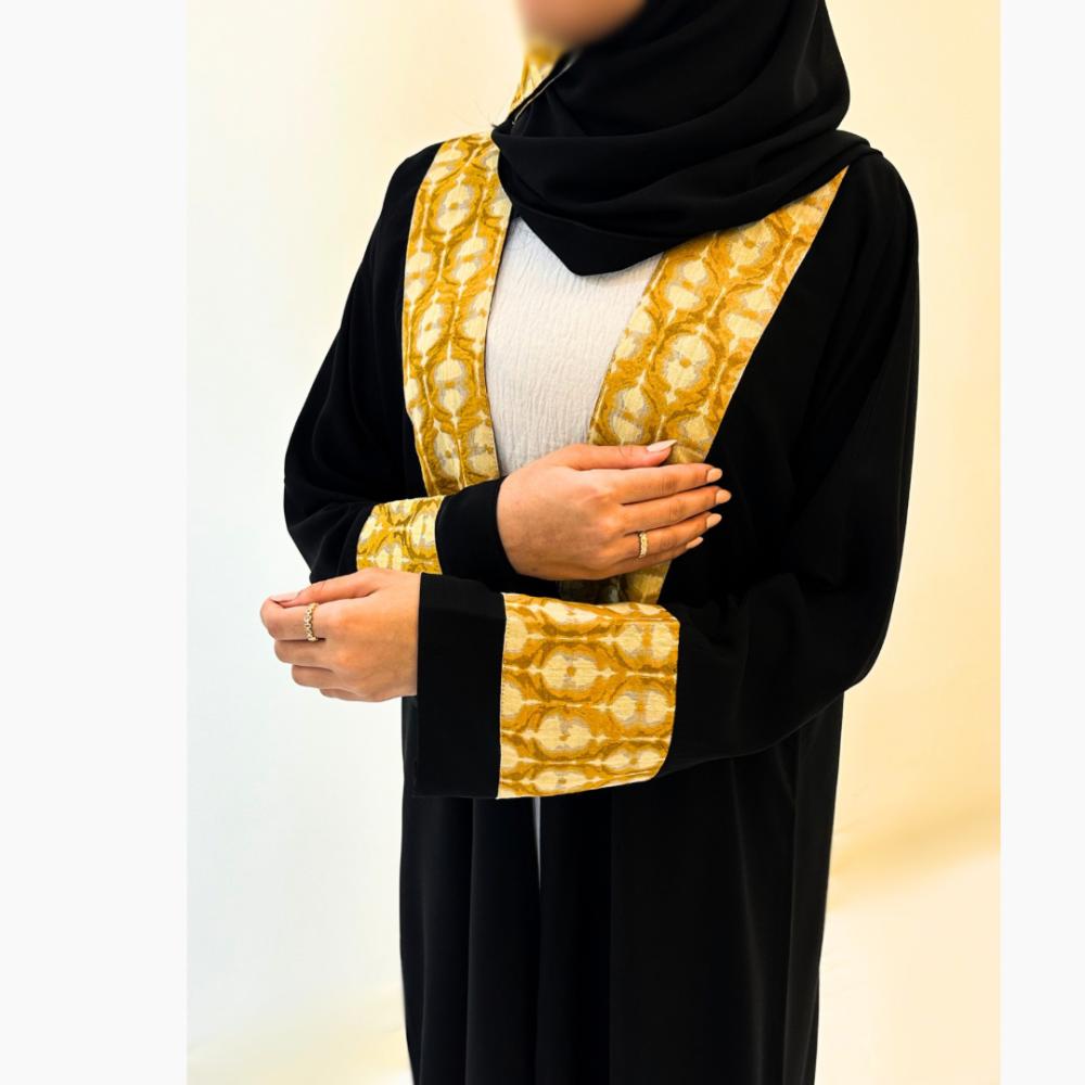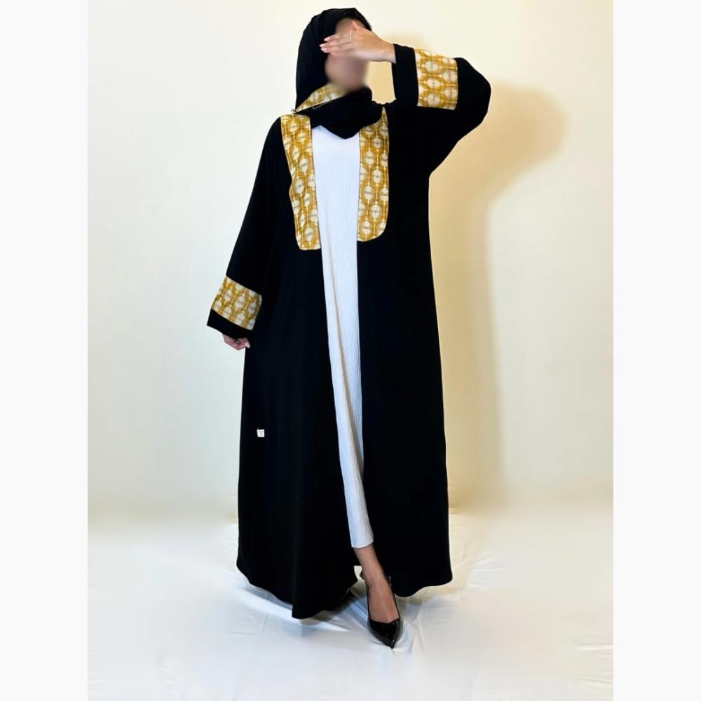 - إطلالة متكاملة مع الطرحة : الطرحة السوداء المرفقة مع العباية تتضمن تطريزًا ذهبيًا متناسقًا مع تصميم العباية